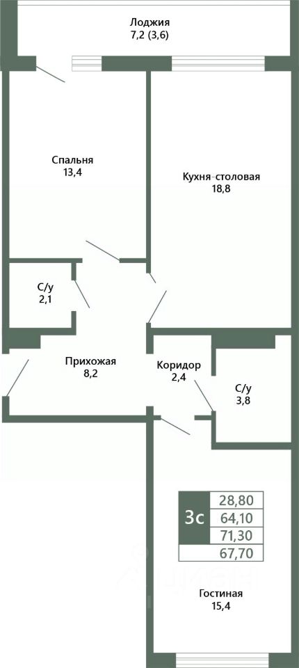 Общая площадь67,7 м²