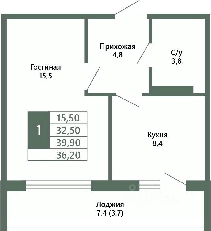 Общая площадь36,2 м²