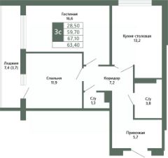 Общая площадь63,4 м²