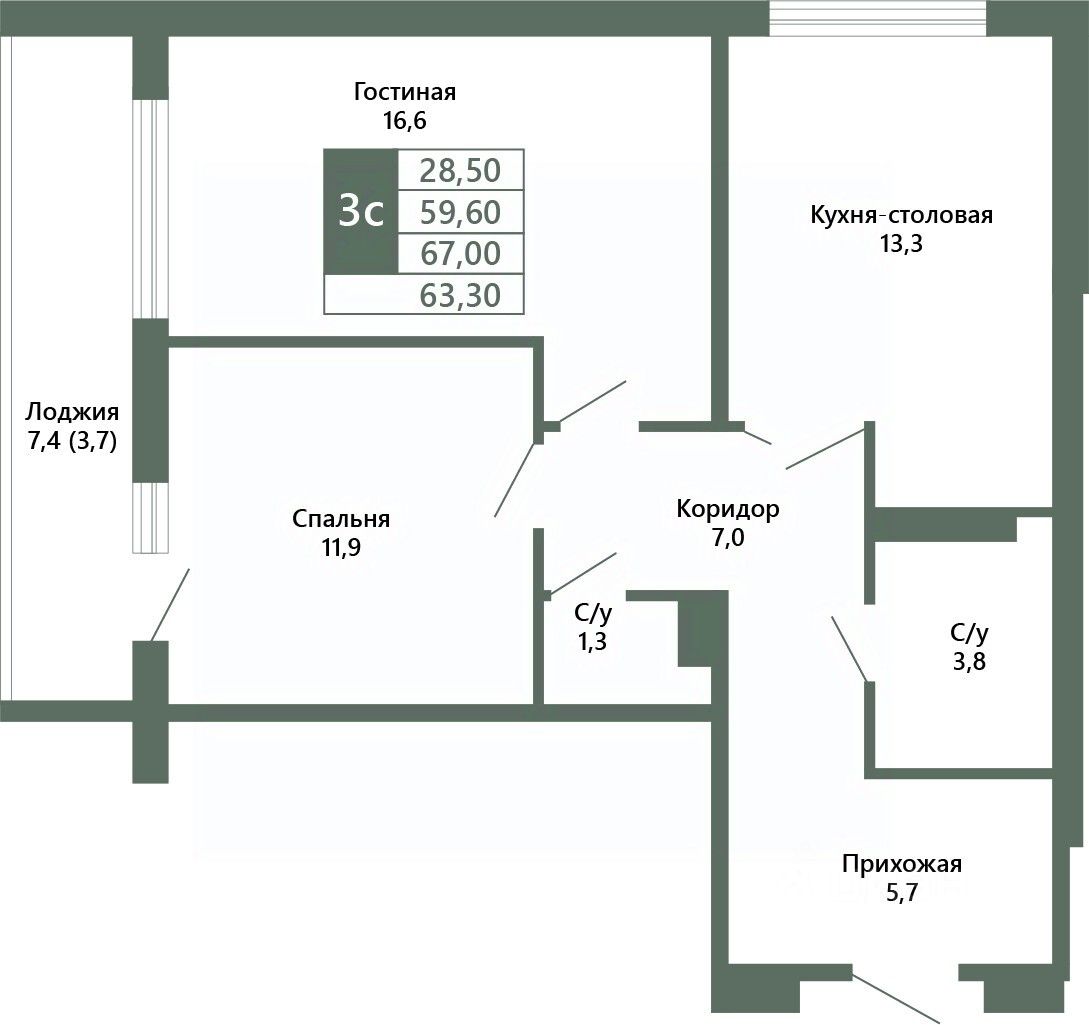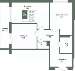 Общая площадь63,3 м²
