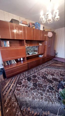В квартире остаётся большая, вместительная "стенка" шкаф в зале, кухонный гарнитур, холодильник, плита, диван, встроенные шкафы и плательный шкаф.