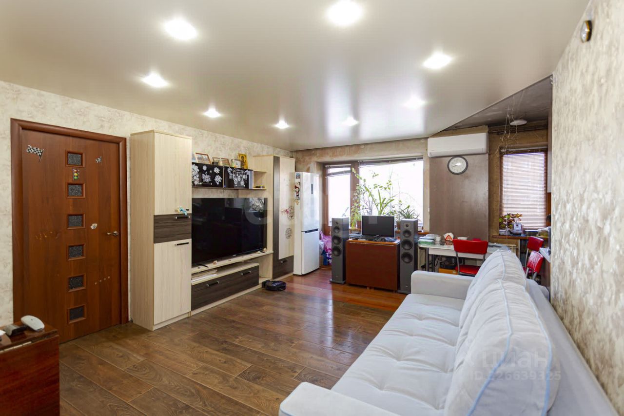 Ключевым преимуществом объекта является грамотная перепланировка, в результате которой кухня объединена с гостиной, что создает современное и просторное жилое пространство, идеальное как для жизни, так и для приема гостей.