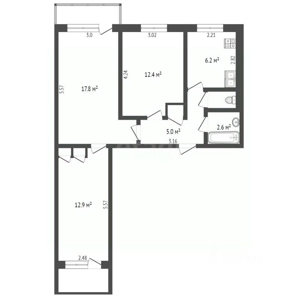 1 лоджия, 1 балкон
