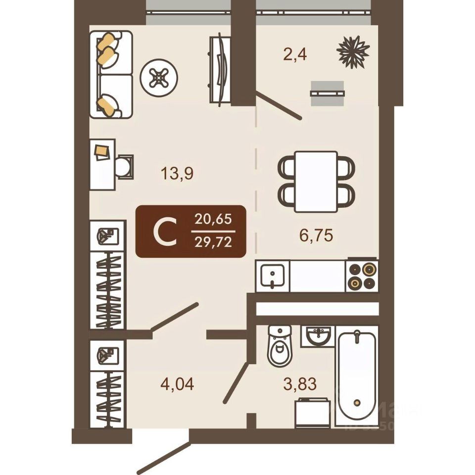 29,72 м²
