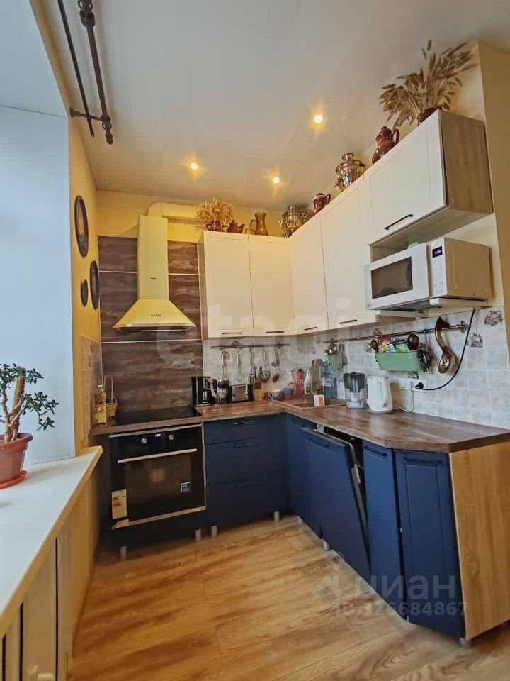 Кухня просторная, светлая, оборудована современной техникой, включая посудомоечную машину.