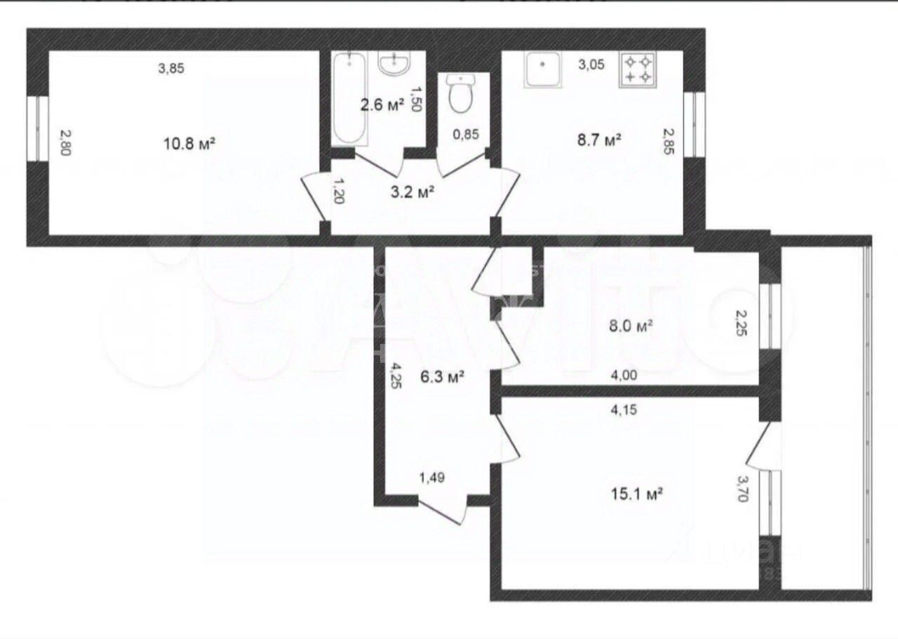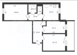 Здесь есть всё для комфортной жизни: три изолированные комнаты, общая площадь 59,3 м², из которых жилая площадь составляет 33,9 м², и просторная удобная кухня площадью 9 м². Удобная улучшенная планировка.