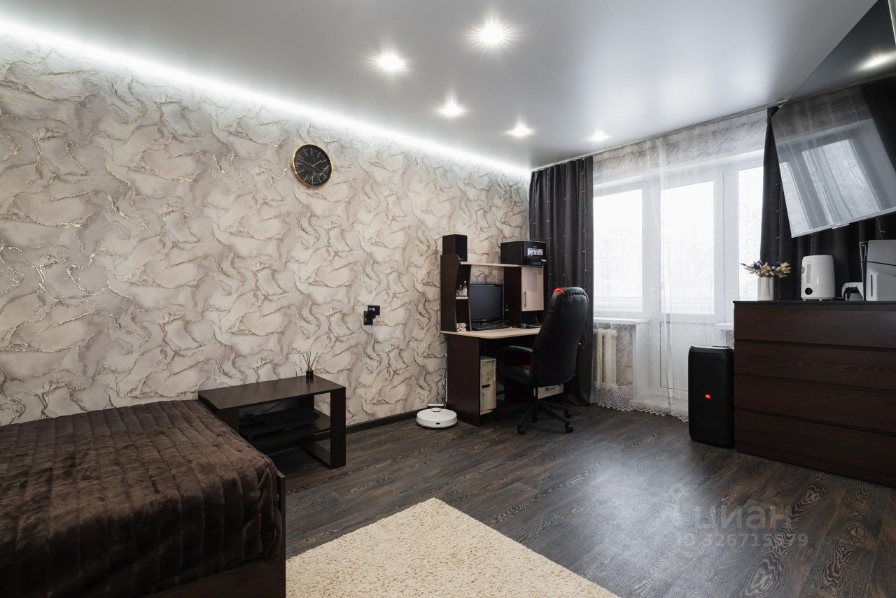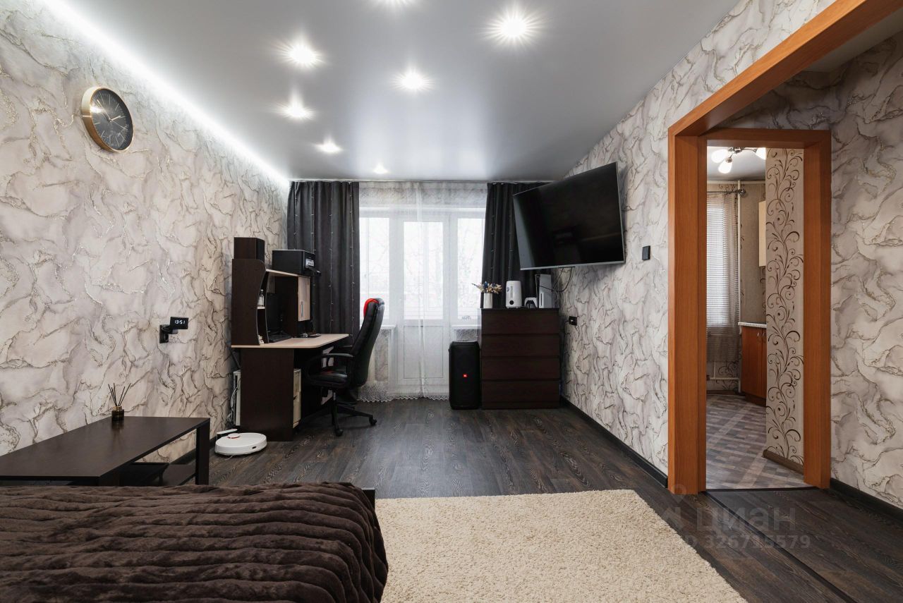 В квартире произведен качественный ремонт: заменена электропроводка, выровнены стены, установлены окна ПВХ, современные входная и межкомнатная дверь, натяжные потолки с точечными светильниками, напольное покрытие качественный полукоммерческий линолеум, обновлены обои. Балкон остеклен и обшит ПВХ. Санузел совмещенный, сантехника поменяна, установлены приборы учета воды; на полу выложена кафельная плитка, стены обшиты пластиковыми панелями.