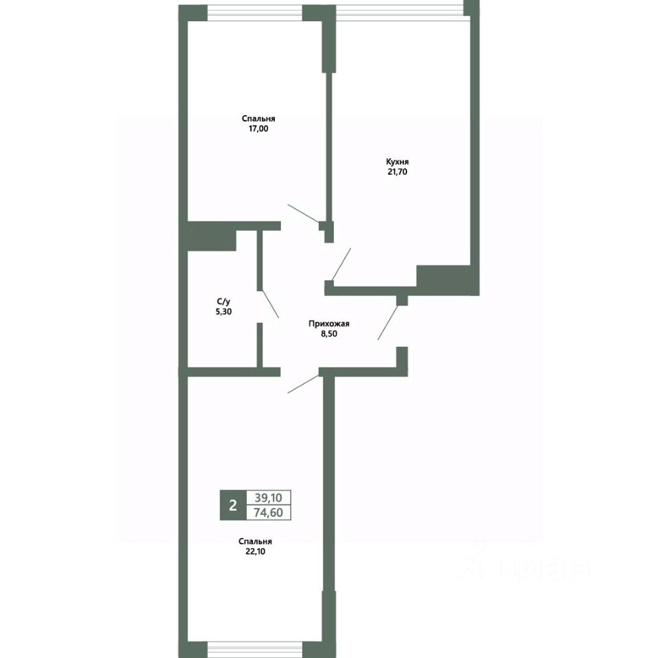 Общая площадь74,6 м²