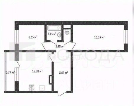 Квартира расположена на 4 этаже 9-этажного панельного дома 1983 года постройки. Общая площадь — 51,9 кв. м, из которых 30 кв. м — жилая площадь. Высота потолков — 2,6 м. Две изолированные комнаты с площадью 18 и 12 кв. м. Кухня — 9 кв. м.