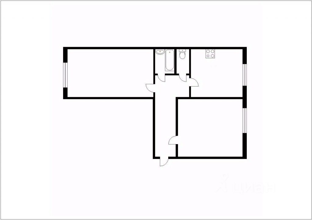 общая площадь квартиры составляет 52.80 кв.м., из них кухня занимает 9 кв.м.
