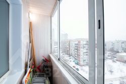 Балкон застеклен и обшит деревом.