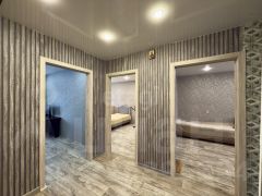 В подарок новому владельцу останется- новый кухонный гарнитур(установлен водяной фильтр), электрическая печь с духовым шкафом, шкаф в спальной, кондиционер и прихожая.