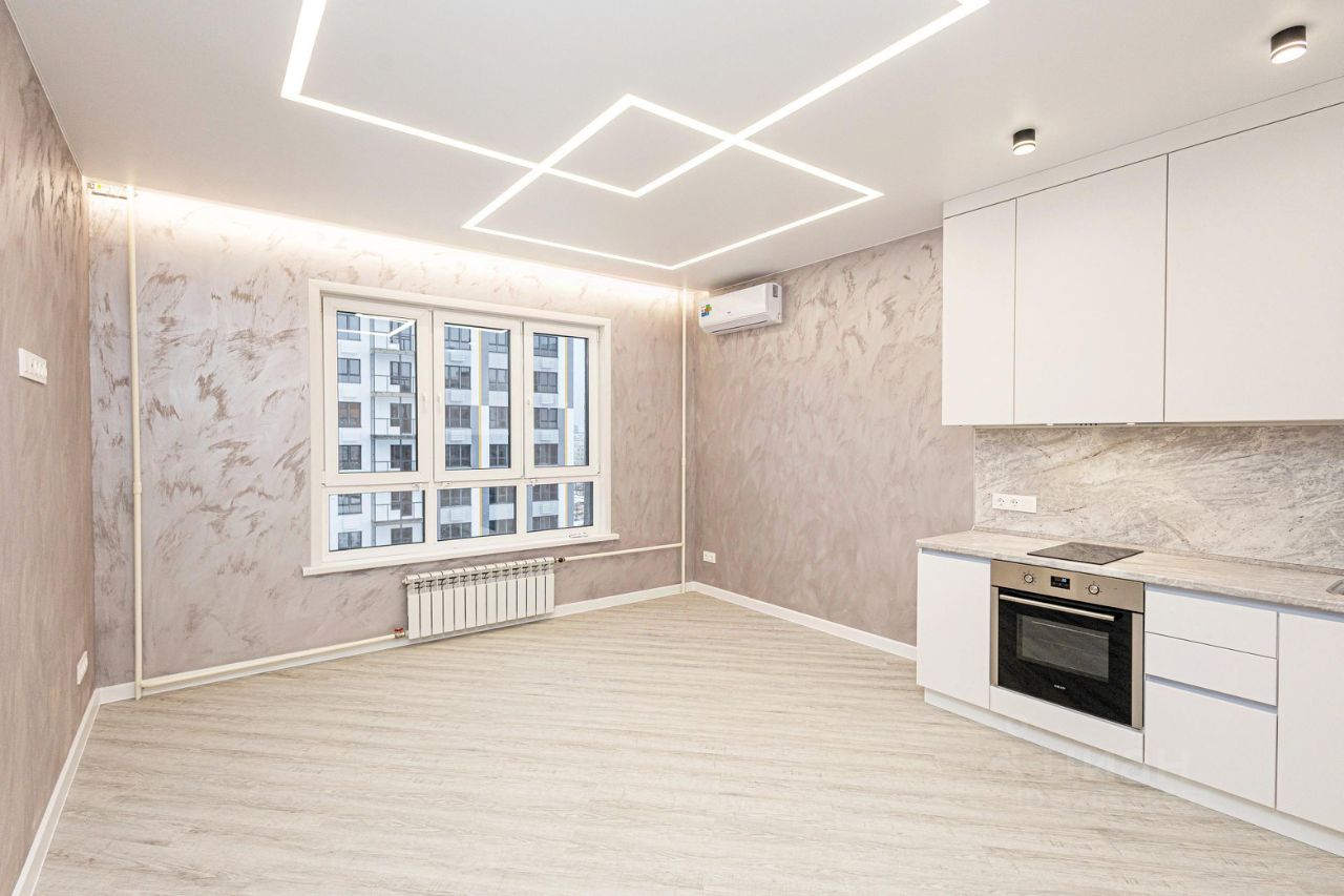 - квартира светлая, солнечная - установлен кондиционер, не угловая, теплая, и уютная, средний 9 - этаж с отличным панорамным видом на жилой комплекс, окна в тихий двор на 2 стороны дома, выполнен дизайнерский ремонт в светлой цветовой гамме никто не жил, пол с современным влагостойким напольным покрытием - ПВХ, стены - декоративная штукатурка, матовые натяжные потолки со стильными светильниками, белые межкомнатные двери, белоснежный кафель в ванной комнате уже укомплектованной мебелью для ванной и стиральной машиной, новая сантехника и санфаянс, инсталляция, изолированная планировка комнат, гостиная с большим витражным окном и выделенной кухонной зоной, установлен новый кухонный гарнитур и новая бытовая техника + уютная спальня с гардеробной и выходом на застекленную лоджию, прихожая со встроенным большим зеркальным шкафом - купе, надежная входная дверь,