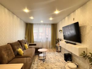 Удобная планировка, все комнаты раздельные, большая гардеробная. Ремонт выполнен в светлых тонах. В санузле кафель, в комнатах ламинат. Свежие натяжные потолки, межкомнатные двери. Практически не требует вложений (пара мелочей и можно заезжать и наслаждаться светом, теплом и простором). Рядом с домом Магнит, Пятерочка, Аптека, школа и детский сад.
