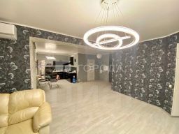 Квартира с современном ремонтом. Окна пластиковые (балкон застеклен панорамными окнами).