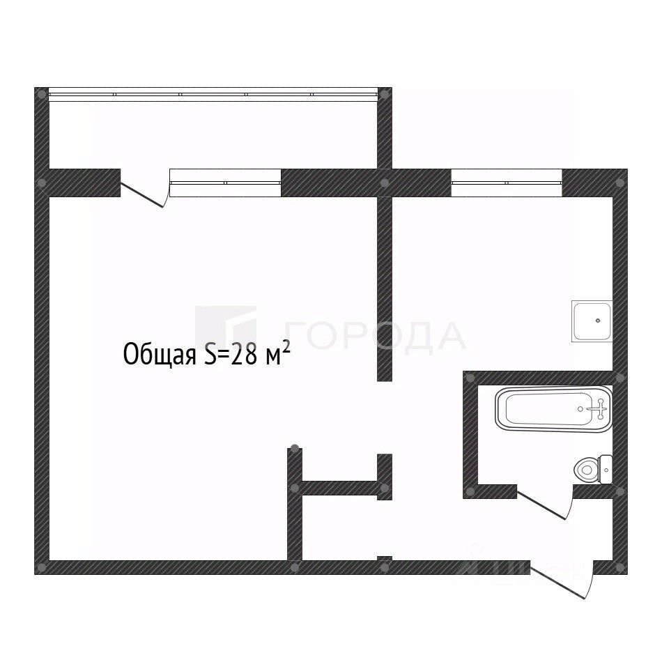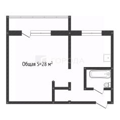 Общая площадь-28,8 м2, жилая-18 м2, кухня-6 м2.
