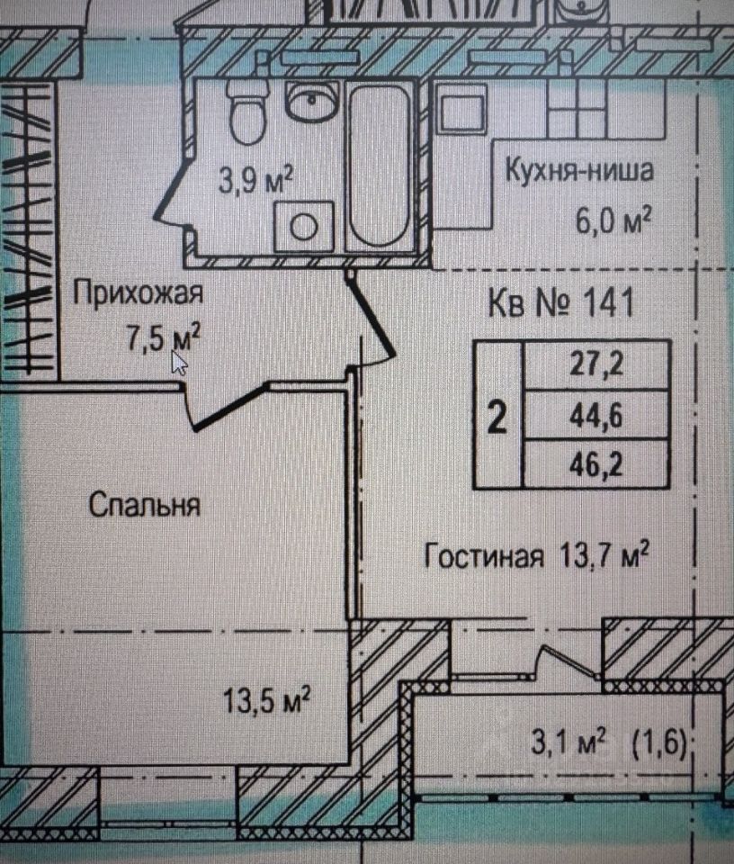 Квартира общей площадью 44,6 кв.м. состоит из большой гостиной с кухонной зоной 19,7 кв.м., просторной спальни 13,5 кв.м., коридора площадью 7,5 кв.и. где достаточно места для установки вместительного шкафа -купе, что позволит не загружать местами хранения жилые помещения. Санузел площадью 4 кв.м. оборудован водосчетчиками и полотенуесушителем. По квартире выполнены работы по проводке электрокабеля, установлен электросчетчик. В квартире есть лоджия. Панорамные окна.