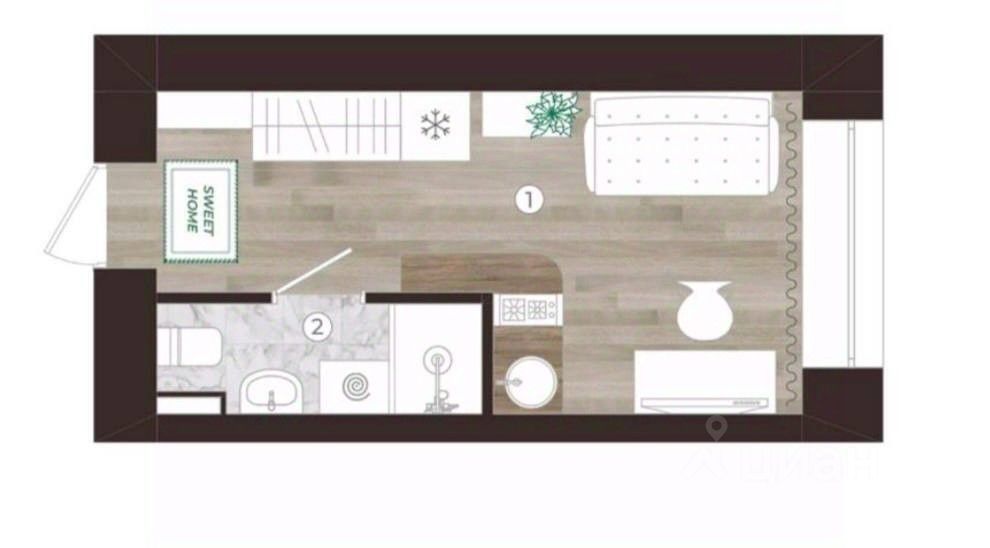 Арт. 92093850. Отличная, компактная студия 16.1 кв.м.