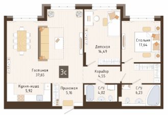 Продаётся 3-комнатная квартира в строящемся доме (корпус 1), срок сдачи: I-кв. 2029, общей площадью 95.66 кв.м., на 3 этаже. Новый жилой комплекс от Специализированного застройщика "Кемеровогражданстрой-Бульвар" расположен по адресу: г. Кемерово, по ул. 50 лет Октября.