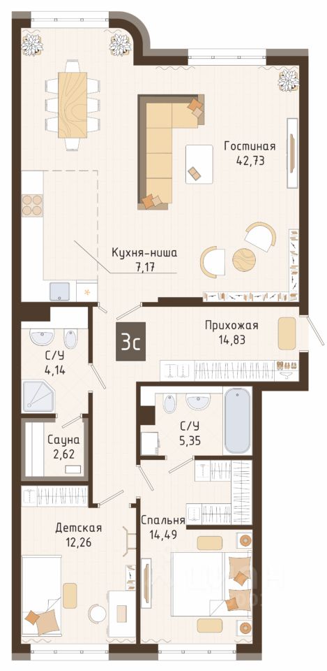Продаётся 3-комнатная квартира в строящемся доме (корпус 1), срок сдачи: I-кв. 2029, общей площадью 105.14 кв.м., на 4 этаже. Новый жилой комплекс от Специализированного застройщика "Кемеровогражданстрой-Бульвар" расположен по адресу: г. Кемерово, по ул. 50 лет Октября.