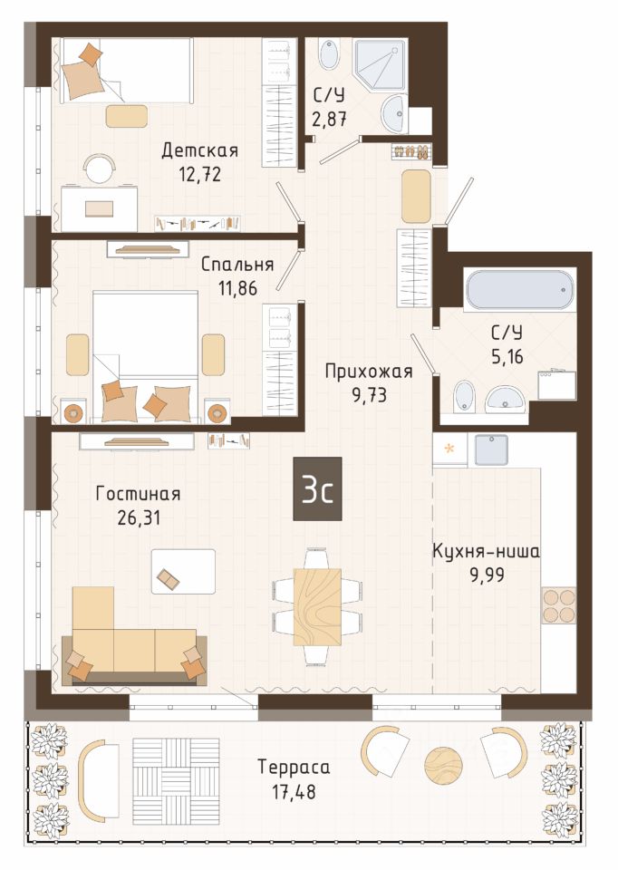 Продаётся 3-комнатная квартира в строящемся доме (корпус 1), срок сдачи: I-кв. 2029, общей площадью 78.64 кв.м., на 2 этаже. Новый жилой комплекс от Специализированного застройщика "Кемеровогражданстрой-Бульвар" расположен по адресу: г. Кемерово, по ул. 50 лет Октября.