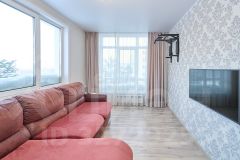 — Просторная кухня-гостиная с панорамным остеклением — много света и ощущение простора