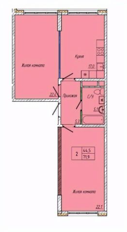 Жилая площадь44,5 м²