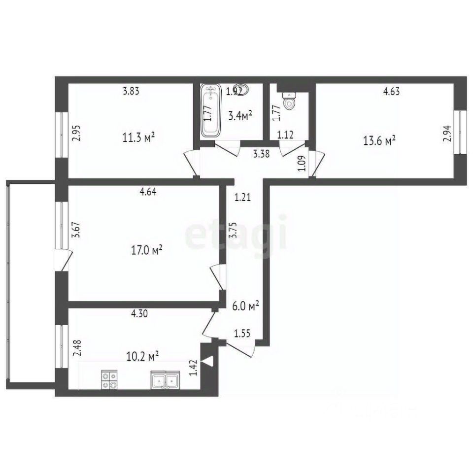 10,2 м²