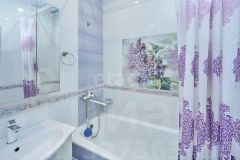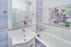Совмещенный санузел отделан керамической плиткой.