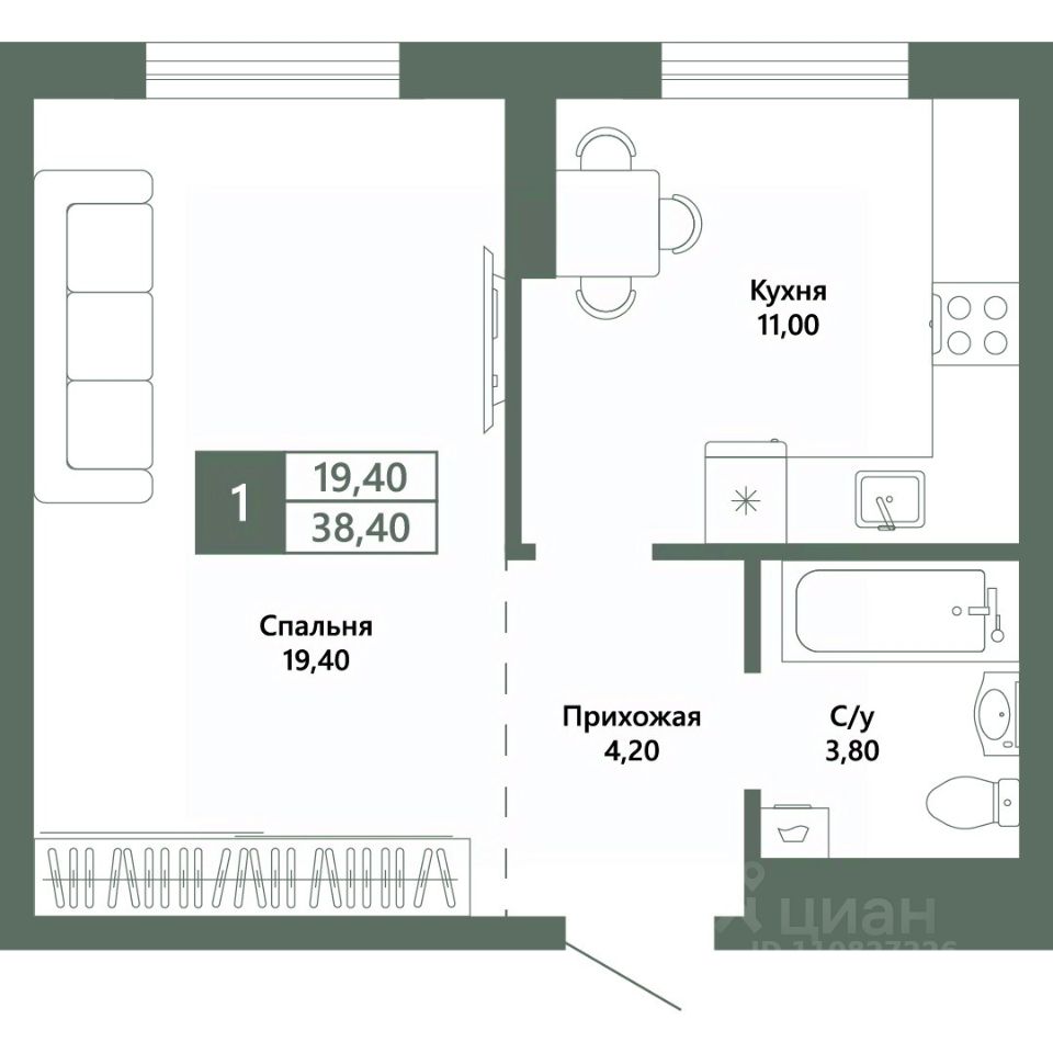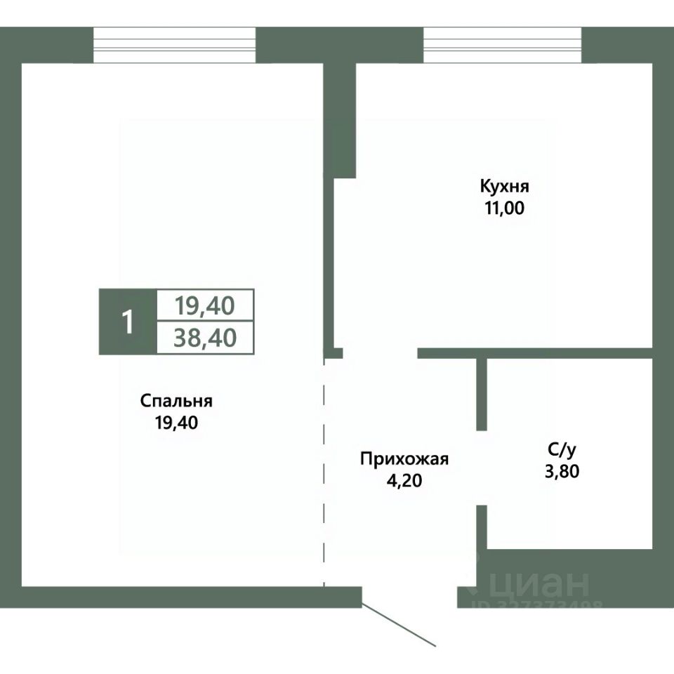 Общая площадь38,4 м²