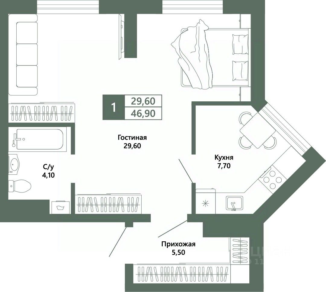 Общая площадь46,9 м²