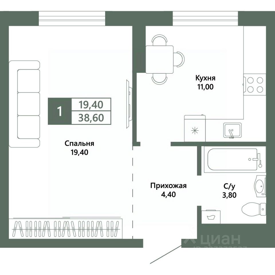 Общая площадь38,6 м²