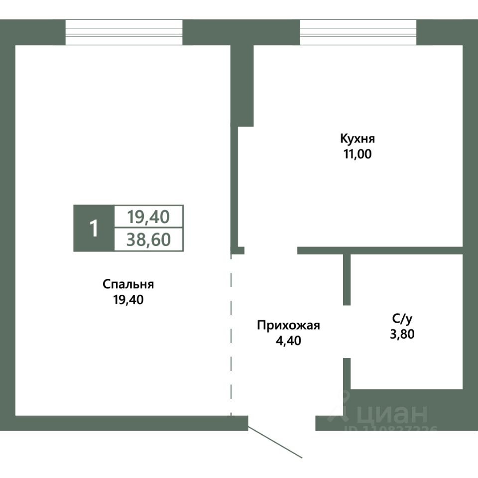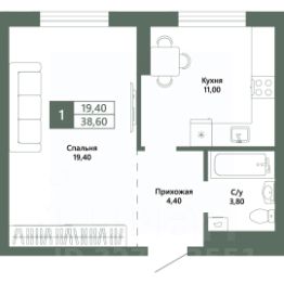 Общая площадь38,6 м²