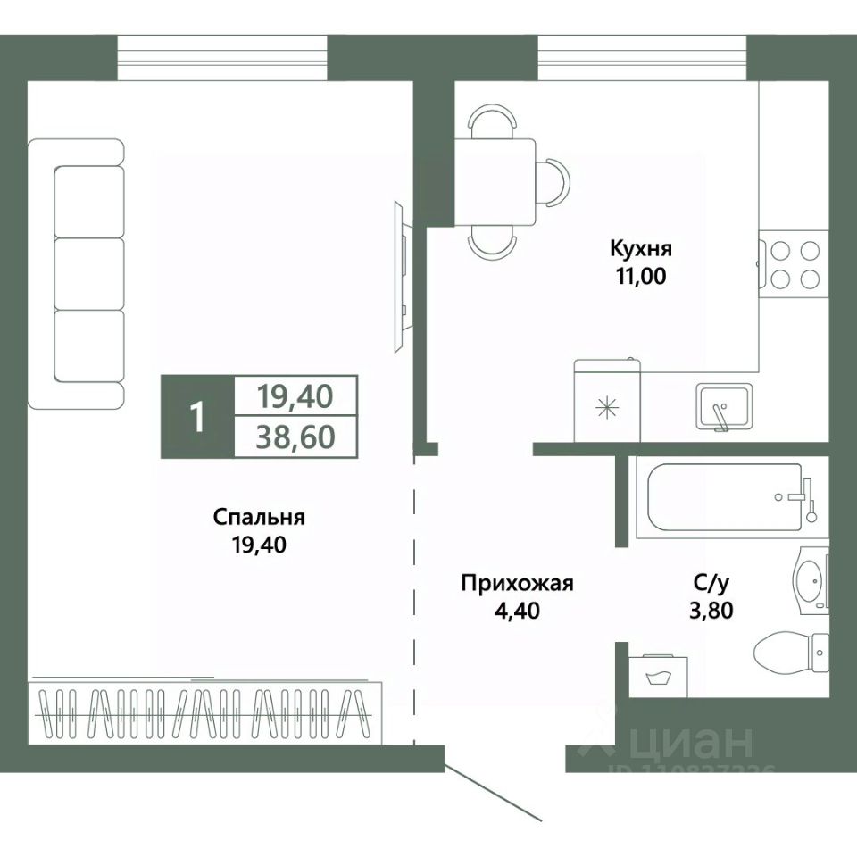 Общая площадь38,6 м²