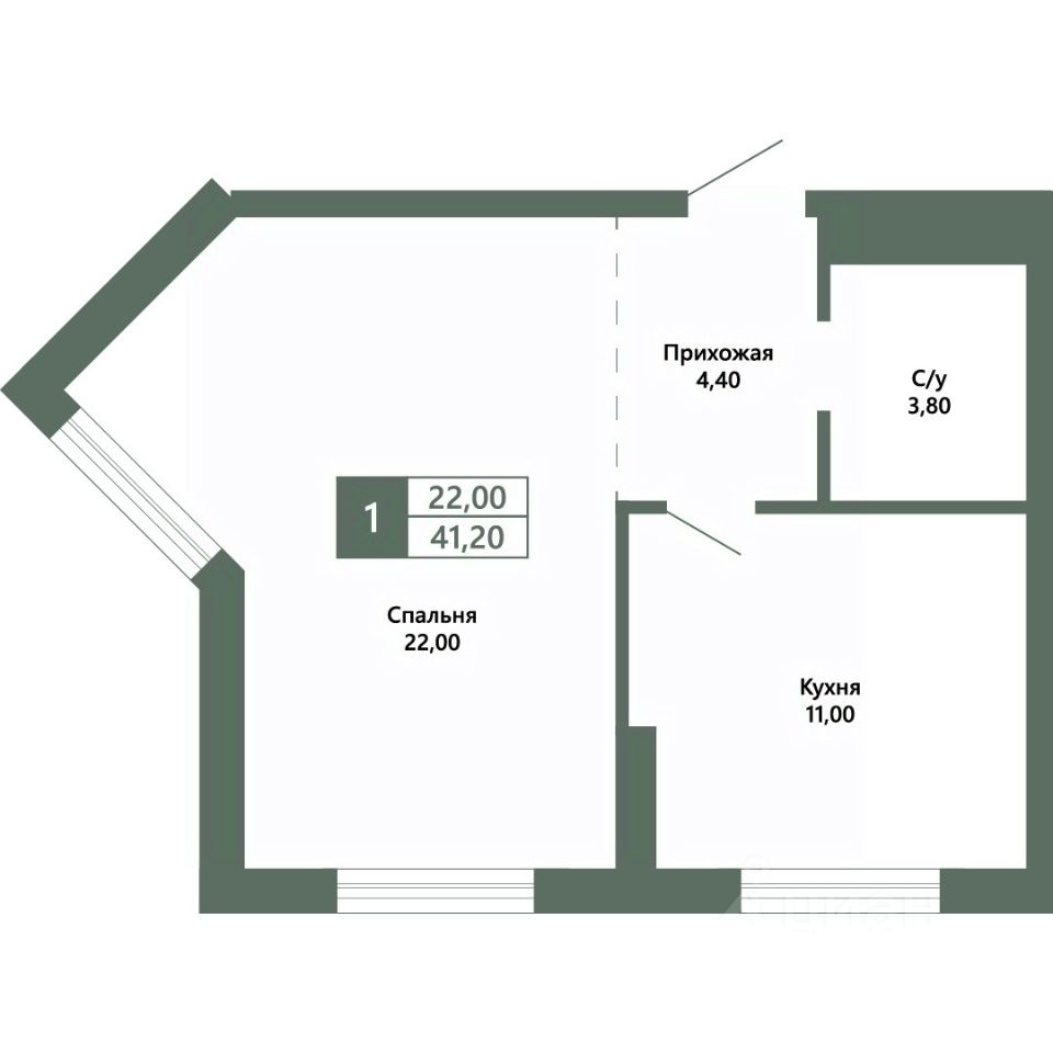 Общая площадь41,2 м²