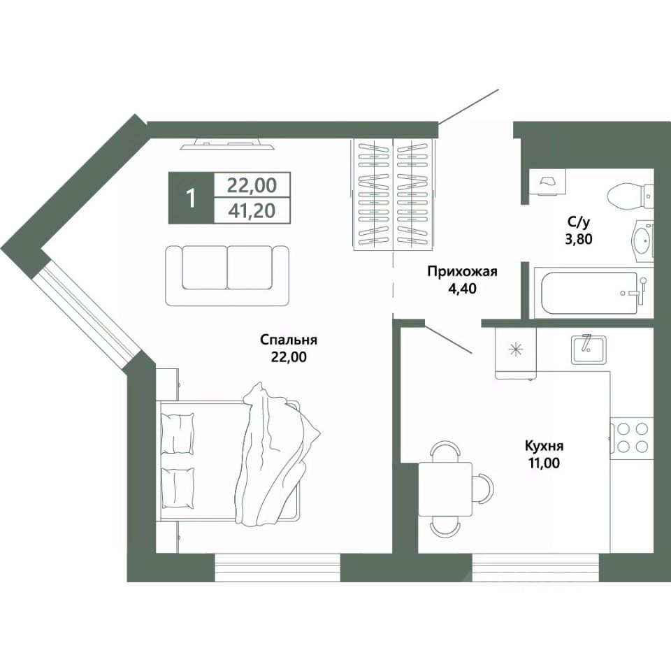 Общая площадь41,2 м²