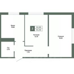 Общая площадь54,3 м²
