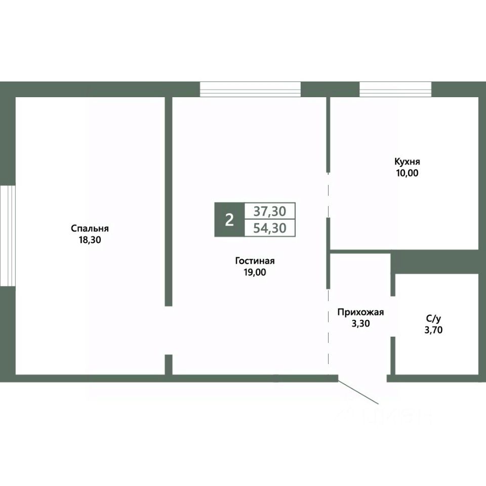 Общая площадь54,3 м²