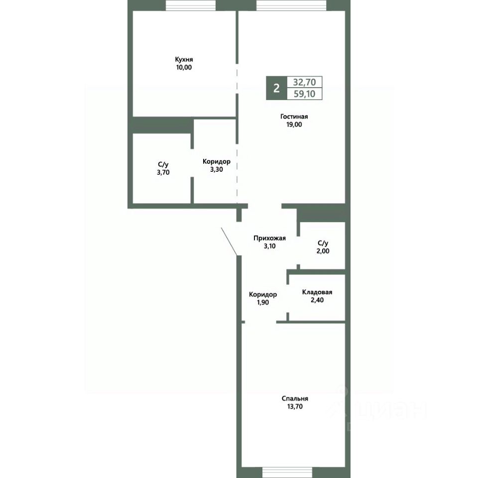 Общая площадь59,1 м²