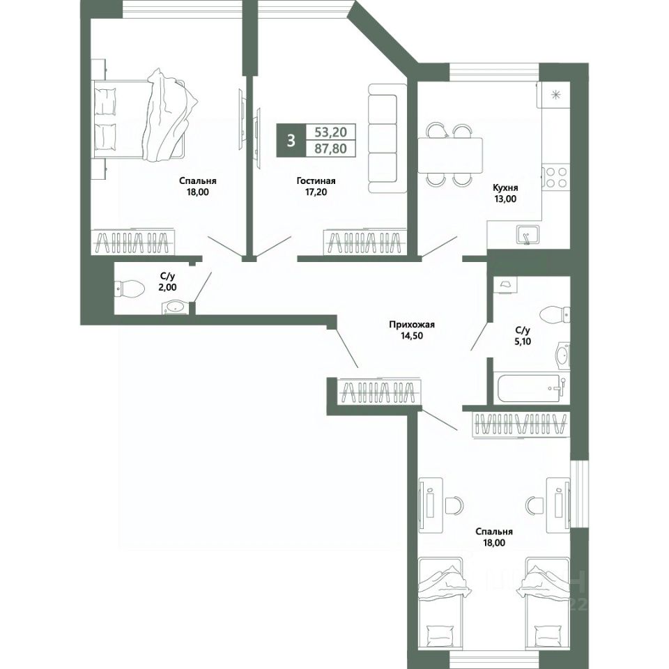 Общая площадь87,8 м²