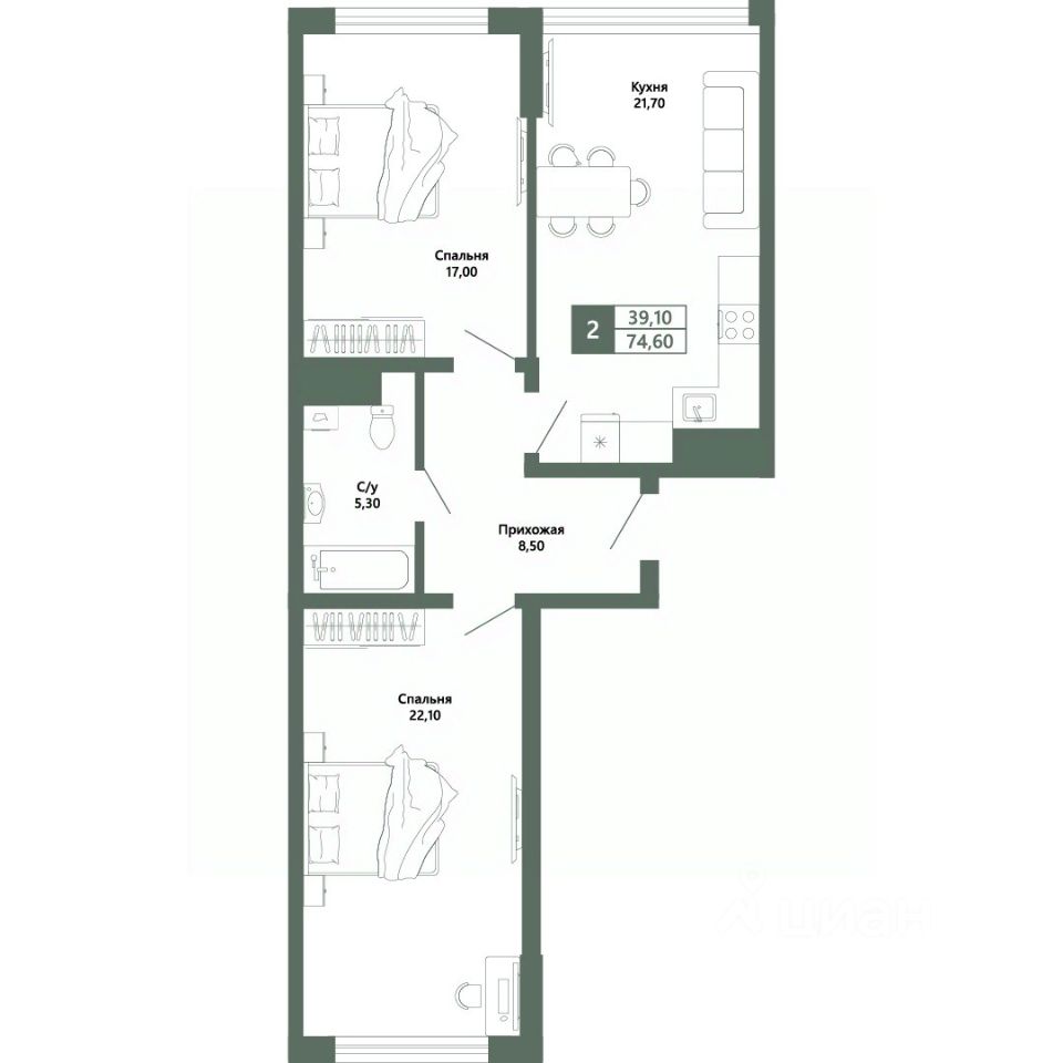 Общая площадь74,6 м²