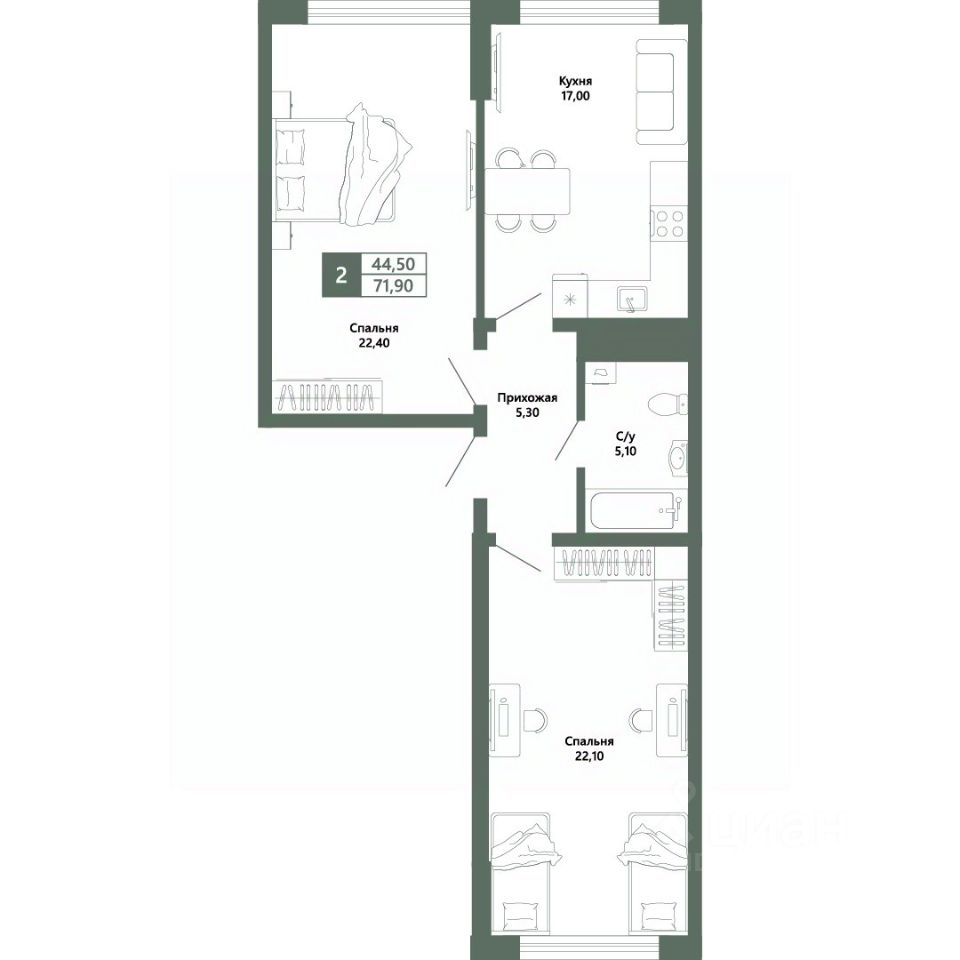 Общая площадь71,9 м²