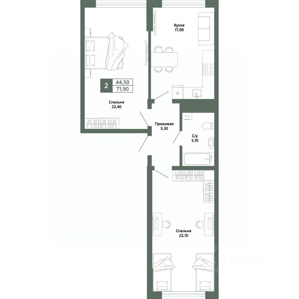 Общая площадь71,9 м²