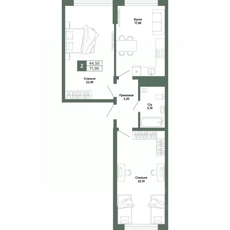 Общая площадь71,9 м²