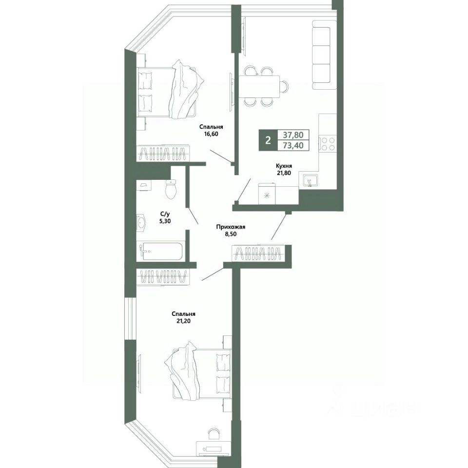 Общая площадь73,4 м²