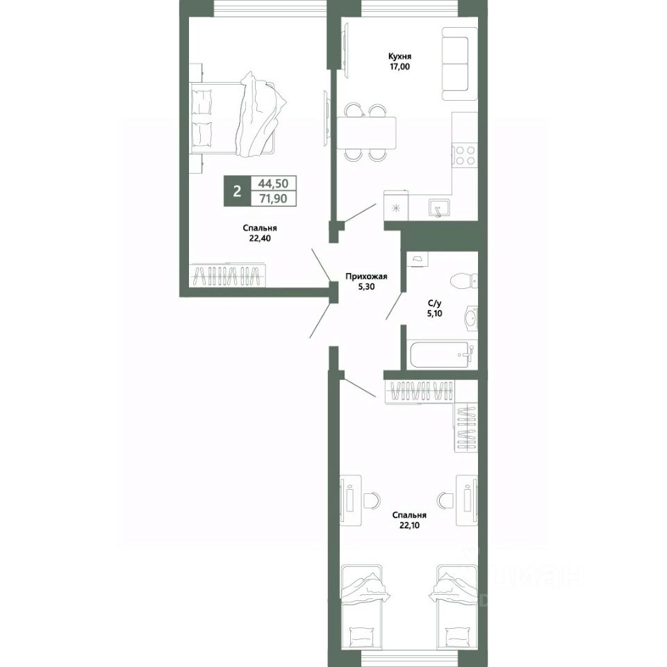 Общая площадь71,9 м²