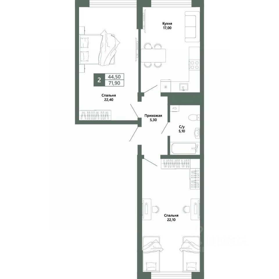 Общая площадь71,9 м²