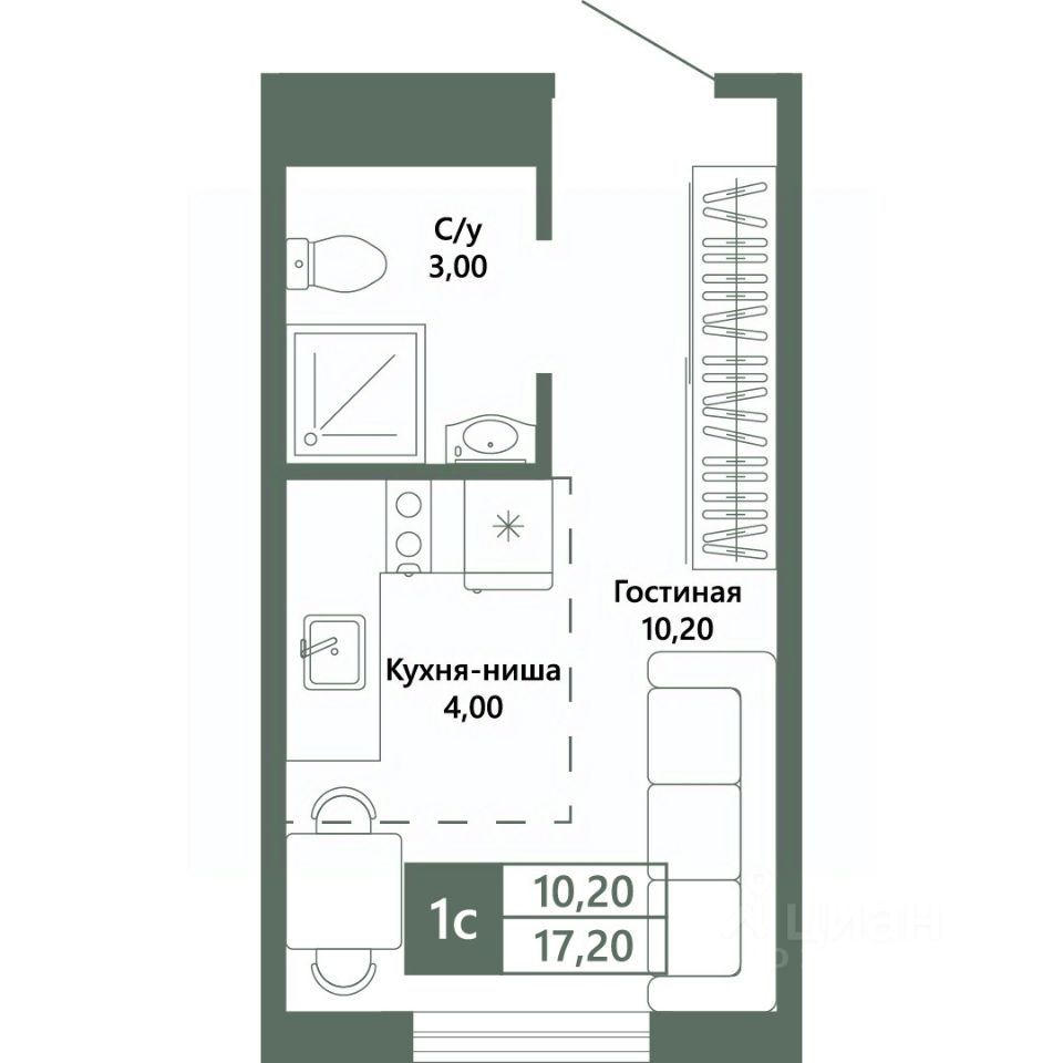 Общая площадь17,2 м²