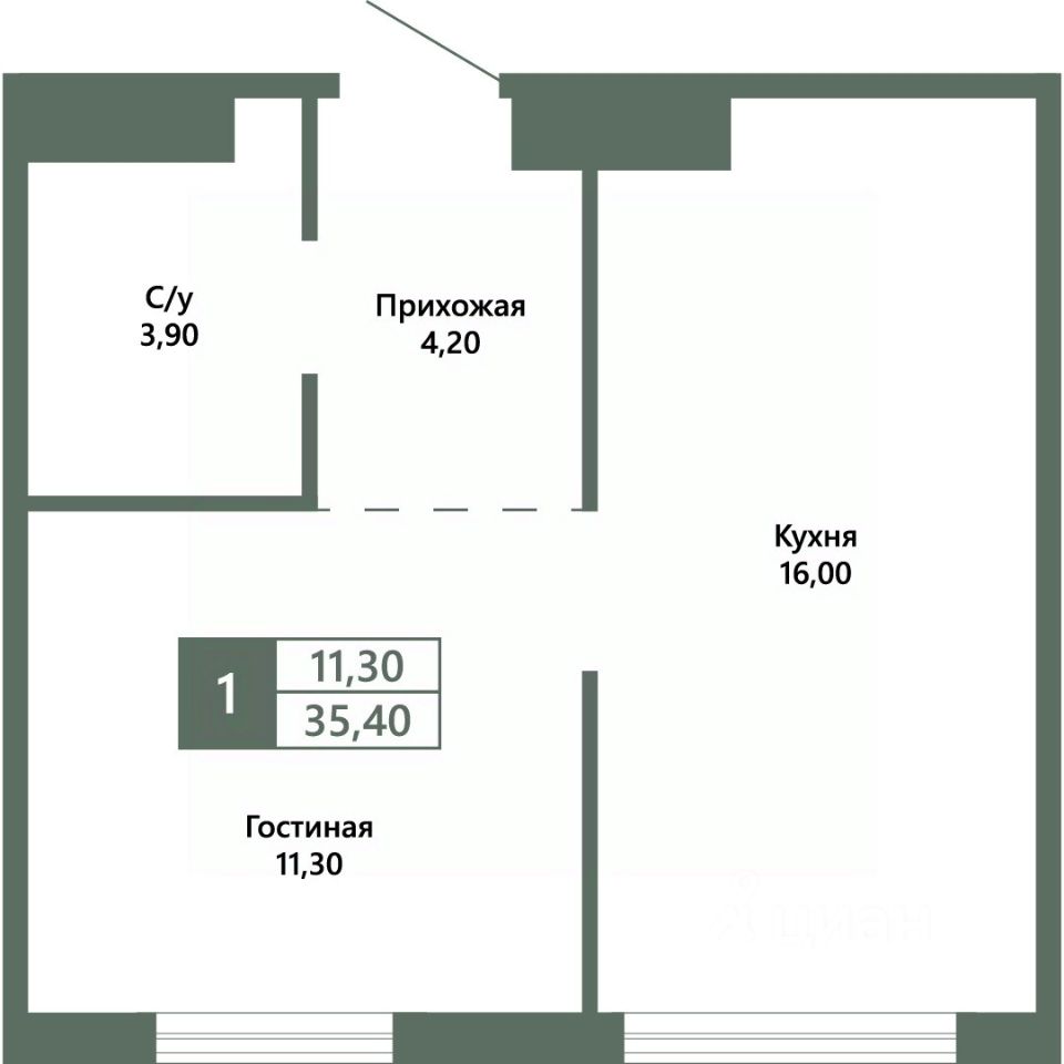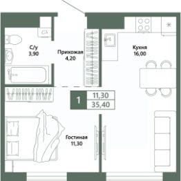 Общая площадь35,4 м²