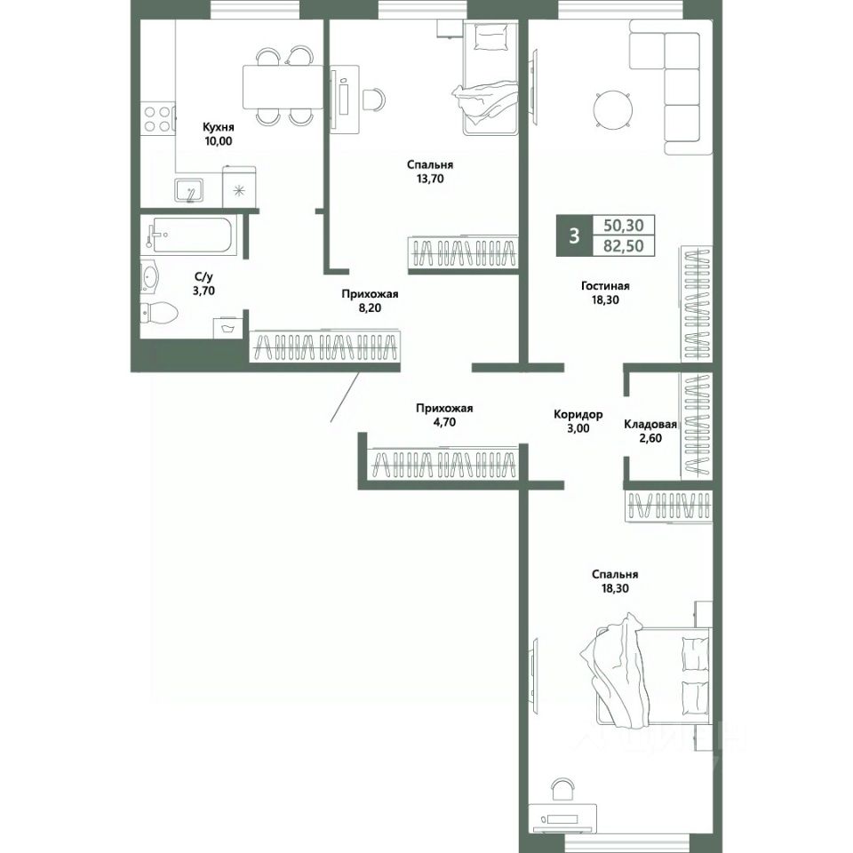 Общая площадь82,5 м²